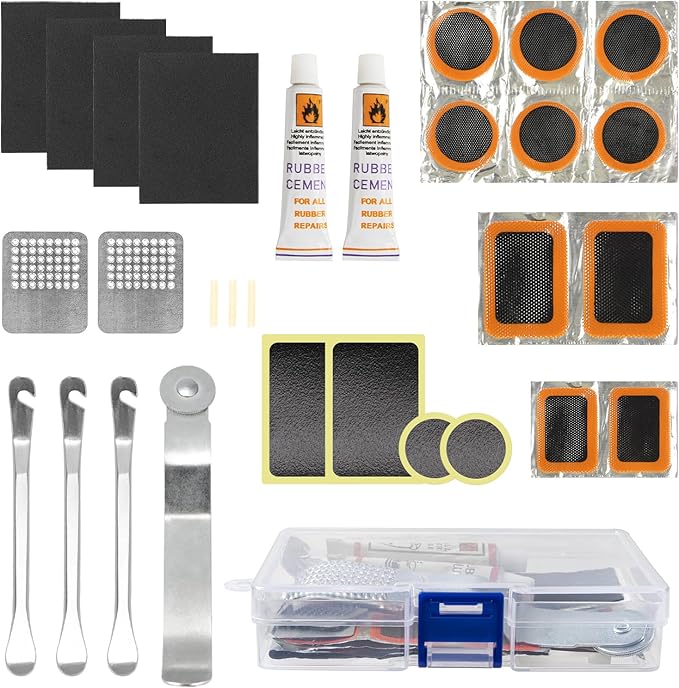 自転車 パッチセット パンク修理 セット Oziral 自転車 ぱんく修理 タイヤ修理キット タイヤパッチ ゴムのり タイヤレバー やすり 応急用タイヤ修理 補修 軽量 コンパクト 汎用 便利 日本語取扱説明書