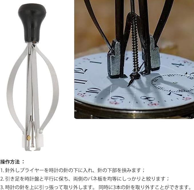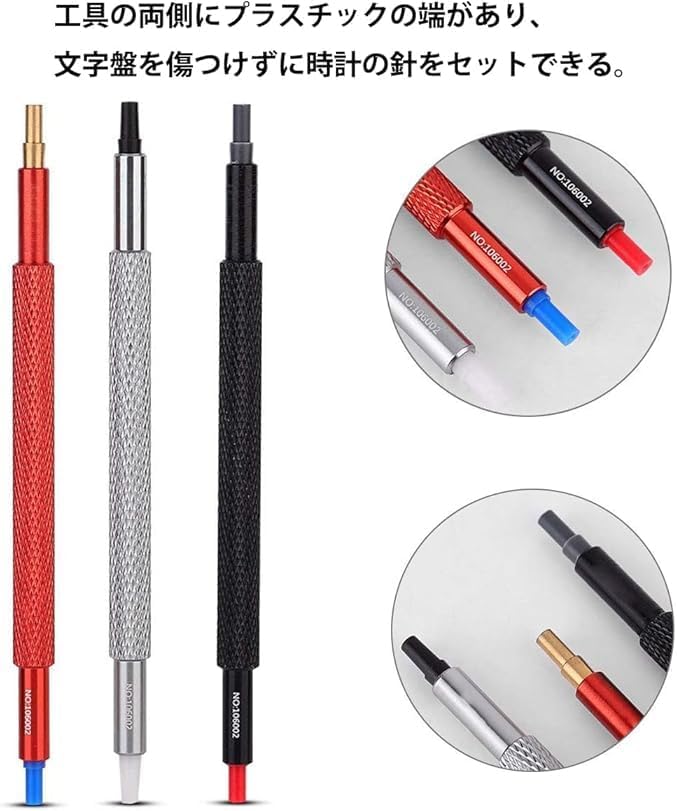 3.時計の針取り付け工具は、時計の針の穴より少し大きいサイズを選択し、片手で押すだけで、時計の実際の部品に触れることを避けることができ、より良い操作を制御することができます。