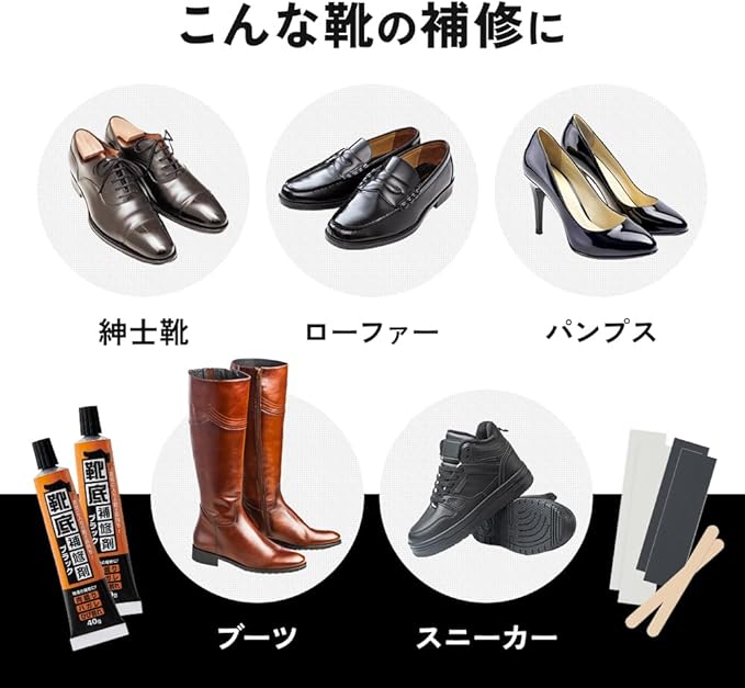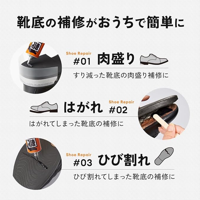 【お気に入りの靴が長持ち】靴底のすり減りをおうちで簡単に補修!ゴムや皮革への接着性に優れている補修剤なので、ひび割れ・剥がれの補修にも使えます。