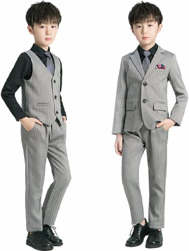 【4点セット内容】ジャケット+蝶ネクタイ+ズボン+ベスト お子様のためのお洒落なスーツセット。