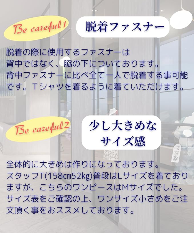 ※注意点※ 少し大きめな作りになっております。スタッフ30代女性158㎝52㎏でMサイズでジャストサイスでした。また背中ファスナーでは無く右の脇の下にファスナーがございます。脱着の際はお気をつけ下さい。
