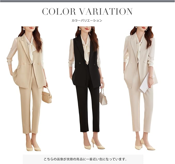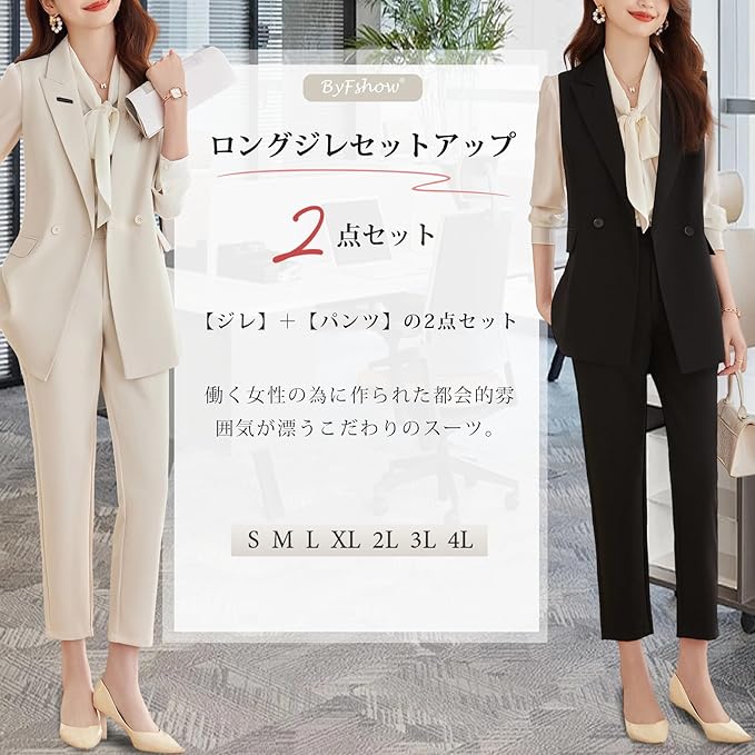限定商品パンツスーツ レディース スーツ ジレ セットアップ 2点セット ロングベスト ベストパンツスーツ カジュアル フォーマル 着痩せ 通勤 洗える 春 秋 入園式 卒業式 発表会
