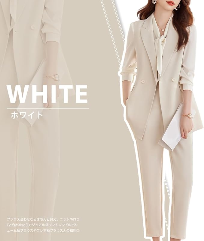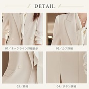 このスーツ レディースセットはビジネス場合はもちろん、カジュアル場合にも適用です。オールシーズン着まわせる適度な厚みのセットアップです。入卒などのセレモニーにも通勤にもカジュアルにも活躍!