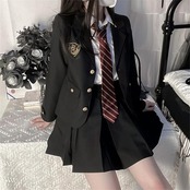 [QOOLYㅤ] 女子高生 制服 コスプレ 黒 ブレザー プリーツスカート ネクタイ 長袖シャツ 4点セット 女子高校生 JK 本格制服 学生服 コスチューム 仮装 スクールスーツ 学園祭 文化祭 卒業式 入学式