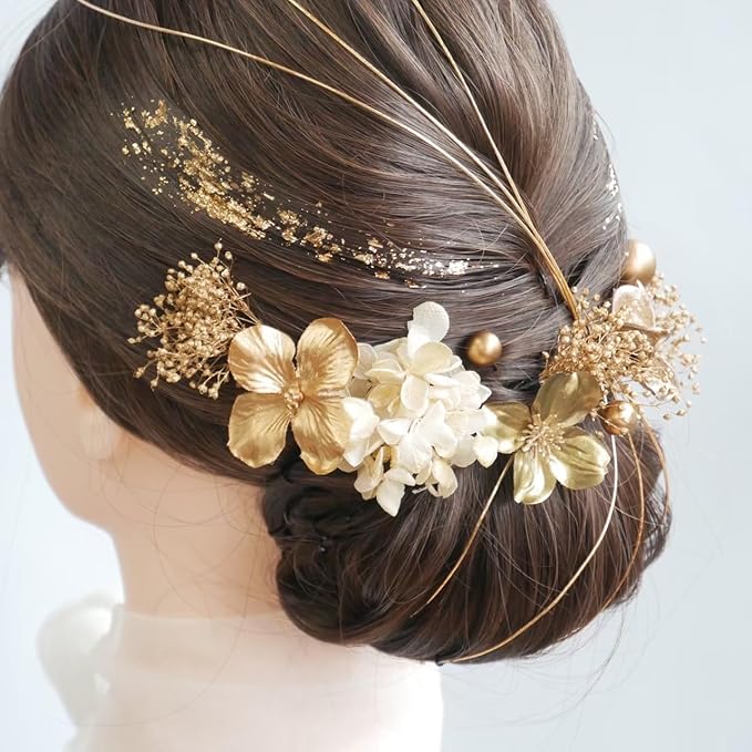[Lomeri] ロメリ ドライフラワーの髪飾り 成人式 卒業式 結婚式 袴Gゴールド小花のセット