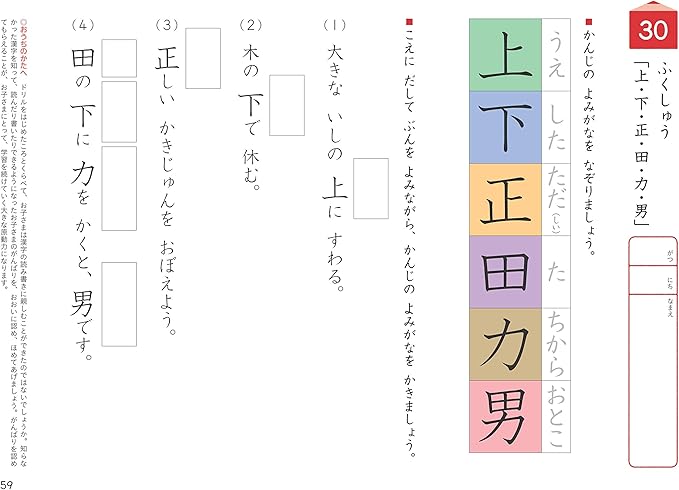 ・小学1年生の配当漢字から、身近で書きやすい36文字を練習します。・はじめて漢字を学習するお子さまに最適です。・小学校一年生の配当漢字のうちの36字を、形が似ていたり意味のつながりのある3字ずつにまとめたグループのなかで学習します。・「読み」と「書き」とはわけて練習し、その後、文のなかで漢字の読みと書きの練習をくり返して、漢字を無理なく身につけていきます。・できたね!シール、がんばったね!賞状付きです。・判型:B5判・本体サイズ:縦18.2 横25.7 厚さ0.6cm・ページ数:64・対象:5・6歳