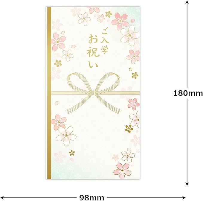 入学のお祝いに使えるご祝儀袋です。定番モチーフの桜をメインに、ミントグリーンのグラデーションをそっと加えてフレッシュな印象に仕上げました。