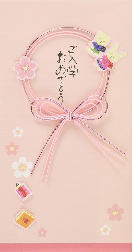色:ピンク 動物と文具柄が可愛い入学お祝用金封