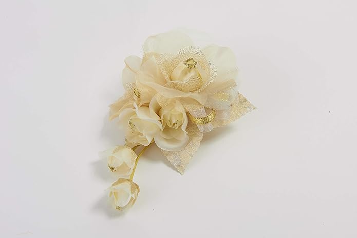 [鎌倉工芸] コサージュ フォーマル 大きい 3弁つぼみさがり レディース ゴールド ベージュ