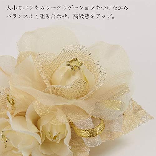 バラの花に揺れる蕾が付いたコサージュ。 大きなサイズと下にさがった蕾が特徴的でパッと目立つ華やかなフォーマルコサージュです。 中心はブーケのように、いくつかのお花をバランスよく配置しています。 上質な素材を使い、細部まで丁寧に手作業で作り上げた 美しい女性的なデザインがコサージュ専門店 鎌倉工芸らしい仕上がり。 雰囲気の異なる3色のカラーはどの色を選んでもコーディネートしやすく、 年齢を重ねても使いやすいカラーです。 入学式 入園式 卒業式 卒園式 結婚式 など 慶事 冠婚葬祭の際にお使いください。