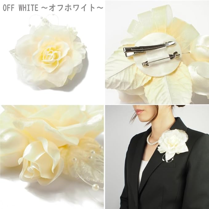 ■合わせやすいナチュラルオフホワイトカラー:どんなお洋服にも合わせやすいナチュラルオフホワイトカラーはさりげなく胸元をエレガントに彩ります。卒業式、入学式、結婚式、パーティーなど多くのシーンで大変重宝いたします。