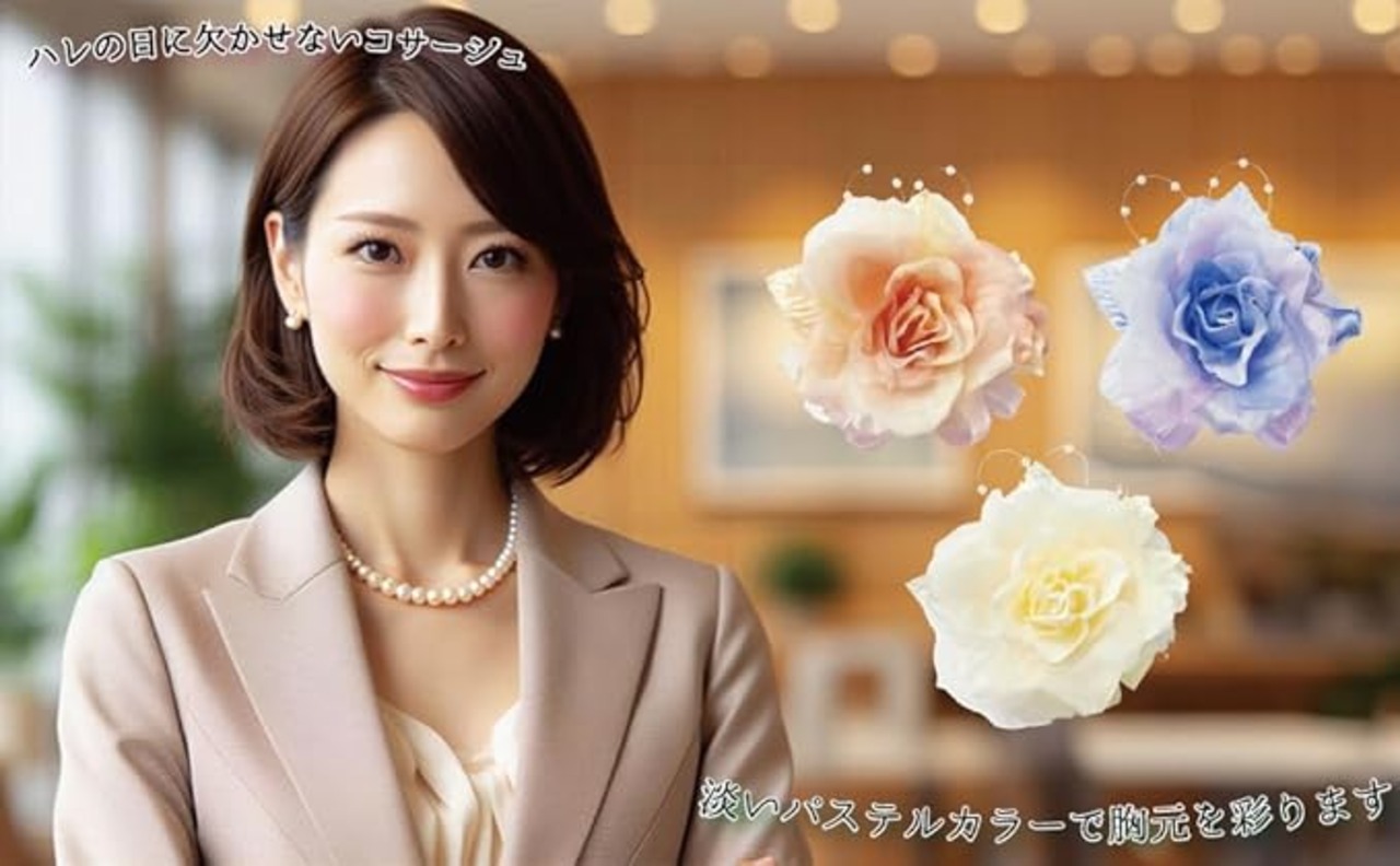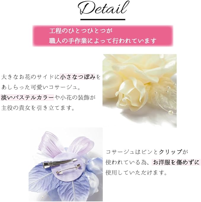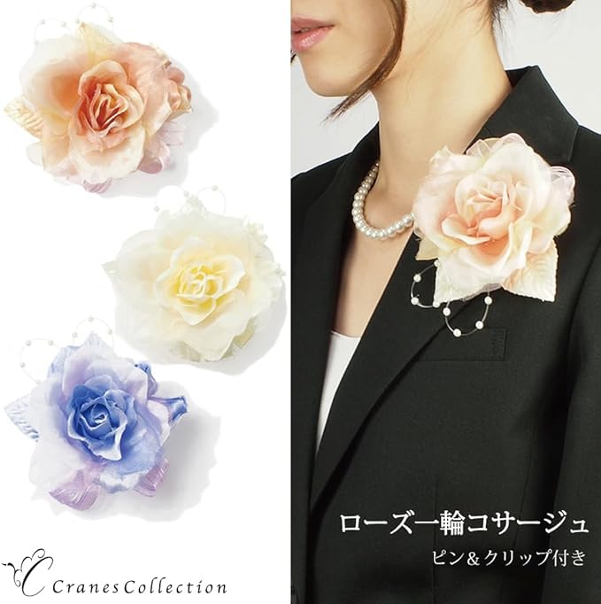 [クレインズコレクション] 手作り コサージュ 2WAY クリップ フォーマル シーンや エレガント な装いに