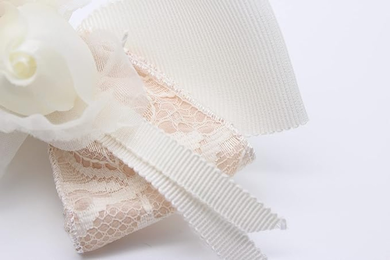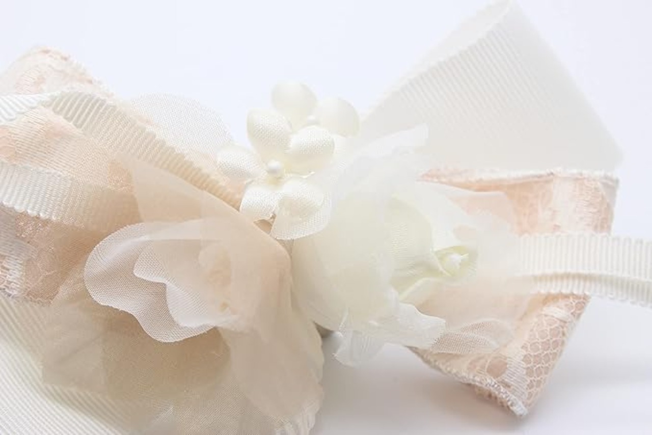 リボンをあしらったコサージュは今季注目のアイテム。白を基調にした使いやすいサイズ感もGood! 今まで子育てを頑張ってくれた奥様へ、お子様の卒業式の日に感謝の気持ちを込めてコサージュを贈る旦那様も増えてきました。 ※この商品は手染めです。水濡れをしますと移染を起こす場合があります。※すべての工程を手作業で生産しているため、サイズやカラーは商品によって若干の誤差が生じる場合があります。