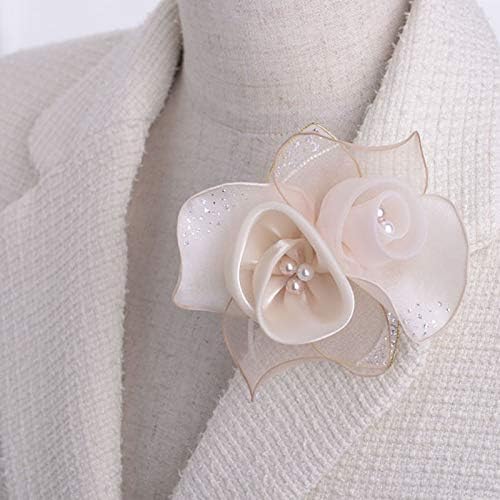 パールの花弁をシフォンとオーガンジーの質感の異なる花びらで巻き包んだ繊細なコサージュです。大き過ぎずフォーマルなスーツとのバランスも○ ラメは控えめながらオーロラが入っているので、ハレの場にふさわしい華やかさも兼ね備えています。