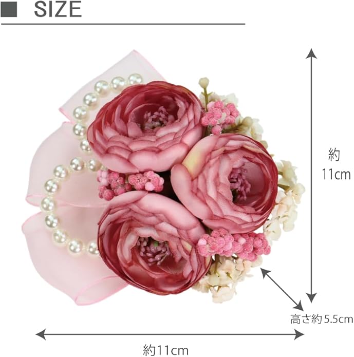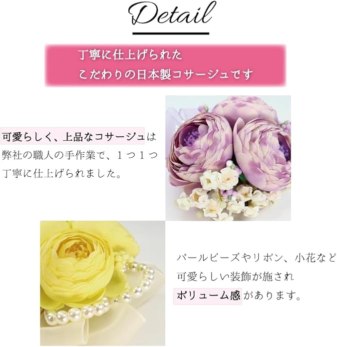 ■素材:合成繊維、パール、オーガンジーリボン、合金 ※金具は安全ピンとクリップの2WAYタイプです。※専用ケースに入れて発送いたします。
