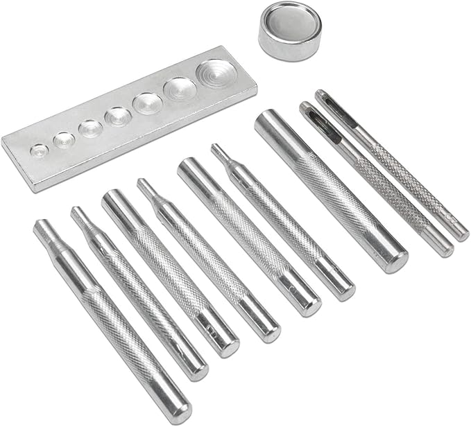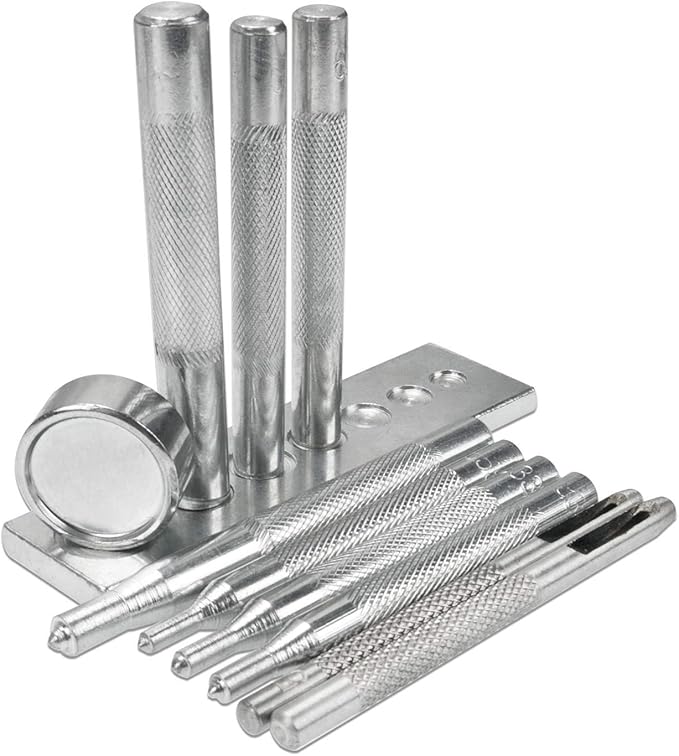 [Yヤクニタツ] レザークラフト ホック打ち具 11点セット ハトメ 万能打ち台 カシメ打ち 革細工 打ち具 道具