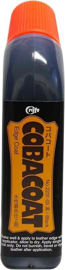 タンニン鞣し革・クロム鞣し革ともに使用できるコバの着色仕上げ剤です。