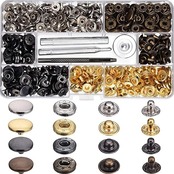 【パッケージ内容】収納ボックスにはスナップボタン120セット(各色30セット)ホック打ち工具1セットが入っており(切れ味の良いハトメ抜き(ポンチ)、凹型打ち棒、凸型ち棒、打ち台)、カラーはゴールド、シルバー、ブロンズ、アイアンブラック