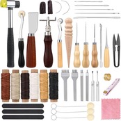 Dennty レザークラフト 革細工 キット 革細工 工具 41点 裁縫セット 革用針と糸 レザートリミングホイール 千枚通し 穴あけ ツールキット ワーキングツール アクセサリー ワックス糸付き
