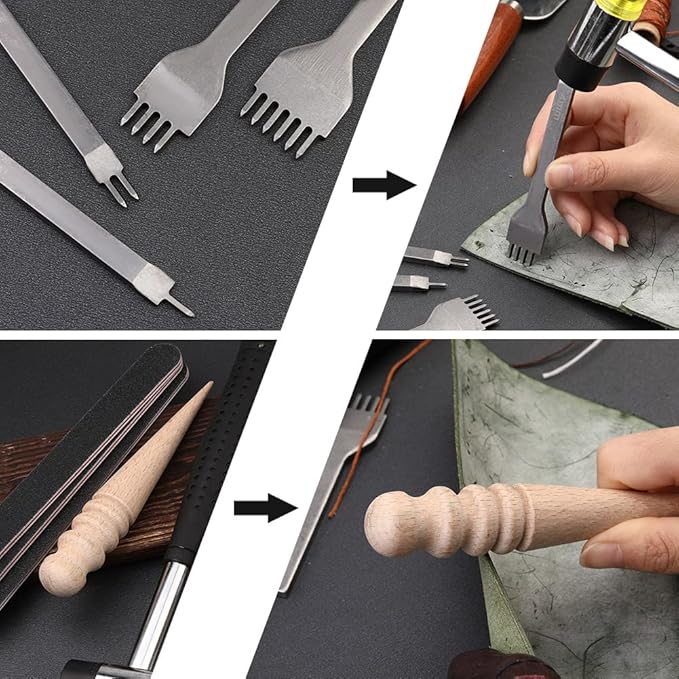 初心者向けの革工具セット: 金属、木材 丈夫と実用的であんぜんな素材から作られました、多種類のツールが揃っていて、手作りの基本的なニーズを満たすことができ、お得な工具セットです。このキットは大人向けです。