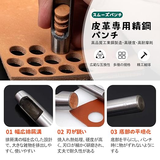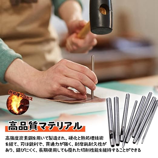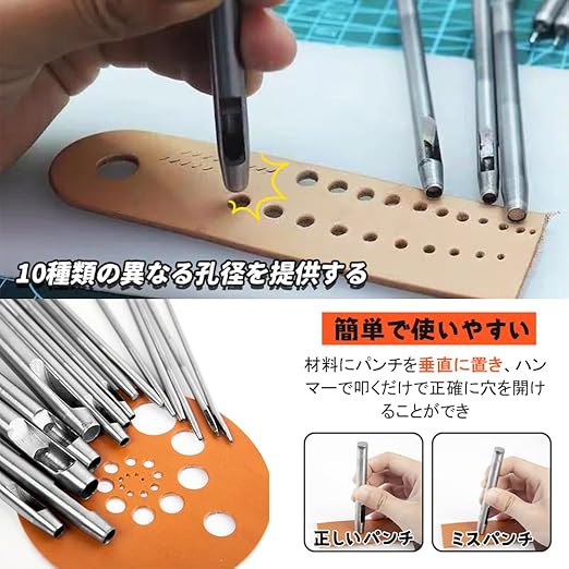 【簡単で使いやすい】複雑な操作を必要とせず、パンチを革や他の材料に垂直に置くだけで、ハンマーを使って叩くだけで正確に穴を開けることができ、手芸愛好家でもプロでも、簡単に手に入ることができ、仕事の効率を高めることができます。