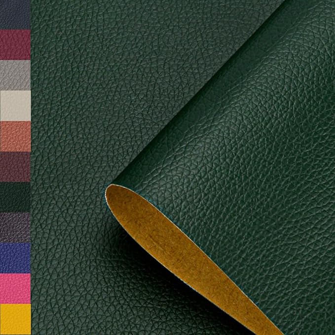 ATAK 合皮 補修シート 135cm 40cm【DIY初心者もプロの仕上がり】レザーシート 補修 革 ソファー補修テープ (ダークグリーン)