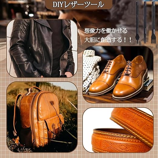 理想的なレザーDIYツール:レザーの魅力のひとつは、切ったり、伸ばしたり、重ねたり、接着したり、縫ったり、削ったり、やすりをかけたりして、さまざまな形や工芸品に仕上げることができることです。革の加工がしやすいということは、様々な製品を作ることができるということです。靴やバッグから、パスポート入れ、ブックカバー、キーフォブ、ヘアアクセサリーまで、大小さまざまなものを作ることができる。好きな形、好きな大きさ、好きな機能で、世界にひとつだけの製品を作ることができる。