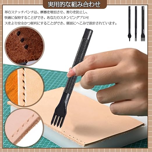 革のステッチパンチは、摩擦を増加させ、滑りを防止し、快適に保持することができ、あなたのスタンピングプロセスをより安全かつ便利にすることができ、側面にへこみで設計されています。想像力を働かせる 大胆に創造する!!