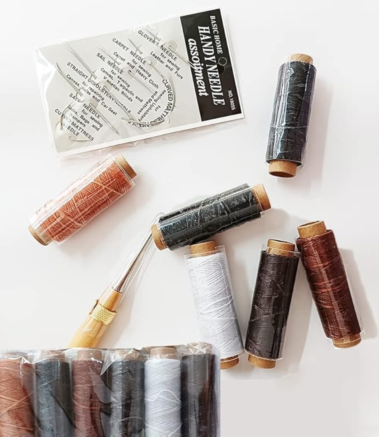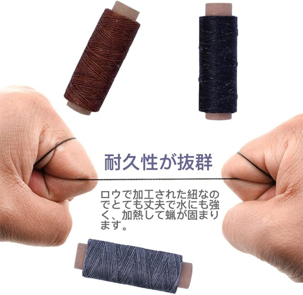 サムコス 蝋引き糸 0.8mm 6色 50m セット 革用 レザークラフト レザークラフト糸 手縫い針 指守り輪 縫い糸用針 ロウ引き 革 DIY 手芸 初心者用 (15)
