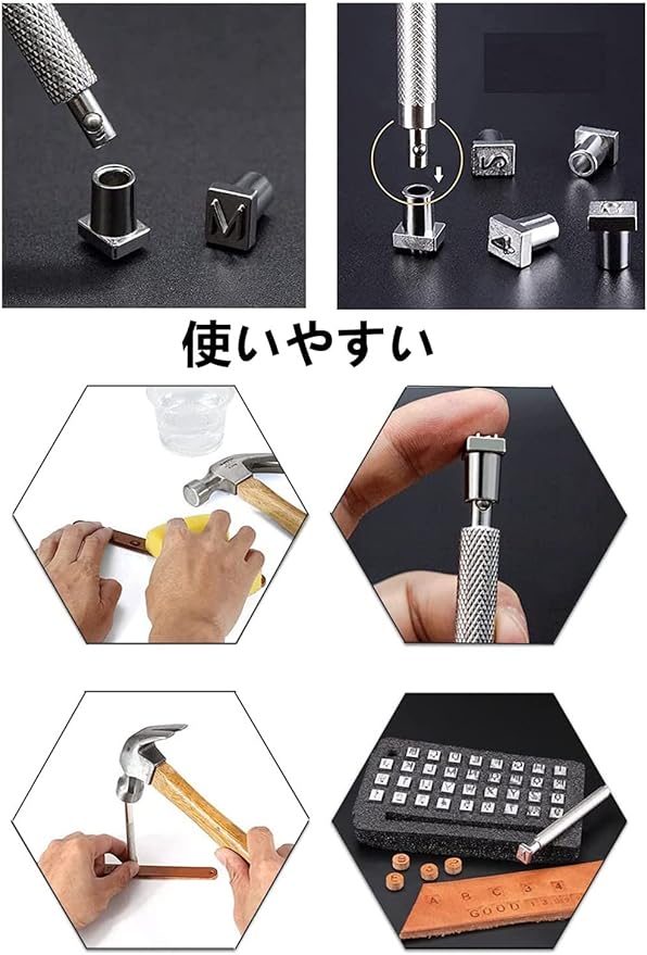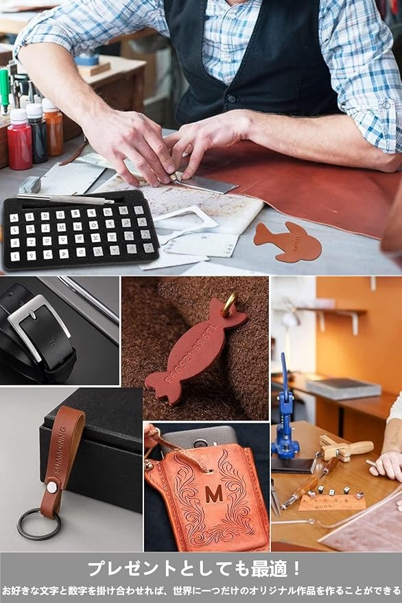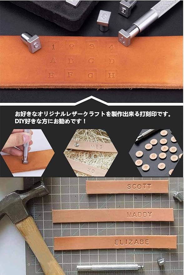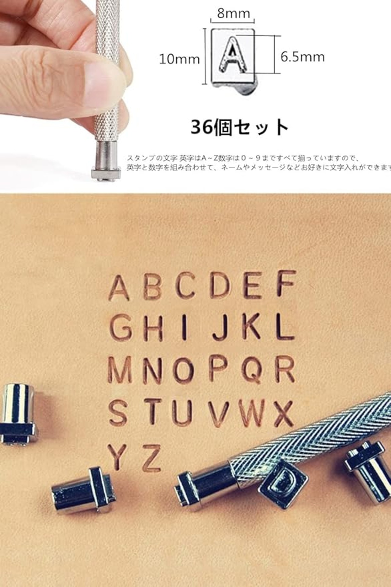 【文字が綺麗】 数字刻印0~9、アルファベットA~Z の刻印がセットになっています。はっきり印刻できるため、初めてでも簡単にきれいな図案が刻めます。お好きなオリジナルレザークラフトを製作出来る打刻印です。
