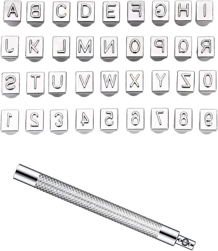 【セット内容】アルファベット大文字A~Zの26個、数字0~9 の10個、合計36個の刻印が入っています。付け替え用の打ち棒(ハンドル)1本が含まれます。オリジナルレザークラフト製作におすすめのレタースタンプ打刻印セットです。豊富で量も十分です、さまざまなニーズに対応できる!