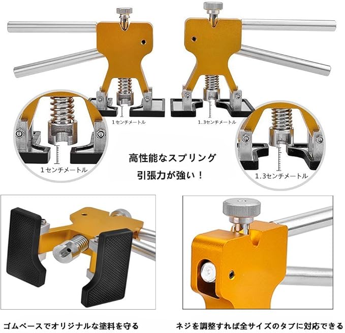 応用範囲:ボディ&フェンダー補修ツール、車&バイクの凹み直しです。または冷蔵庫、洗濯機などの凹みを修理できるDIY修理ツールです。凹みの大きさによってタブを利用してください。