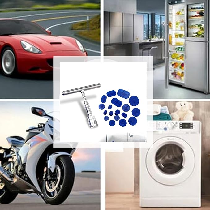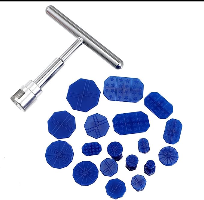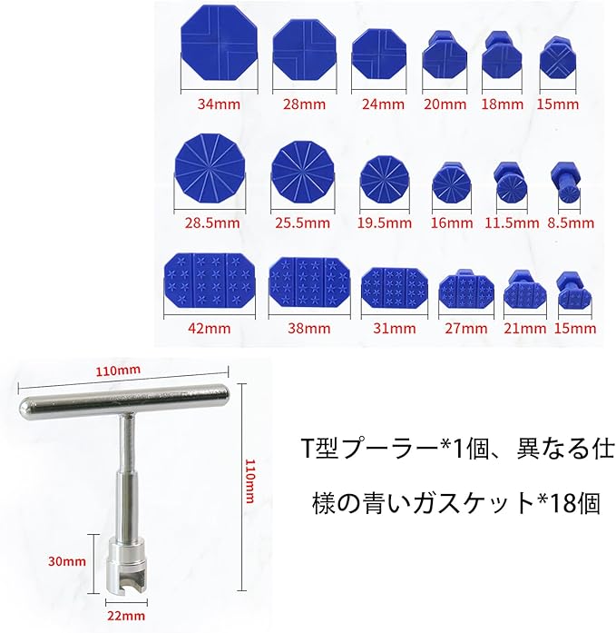 セット内容: 18個の異なるサイズのデントリペアタブと1本の専用プーラーツールが含まれた完全なへこみ修理キット
