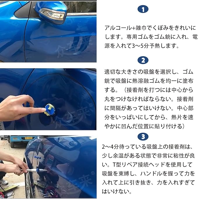 塗装保護: 元の塗装を傷つけることなく、車体表面のへこみを修復できる設計