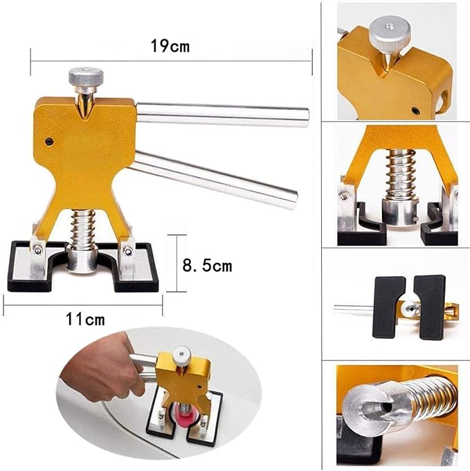 応用範囲:車、バイクのボディ&フェンダーの補修や、ドア、冷蔵庫、洗濯機などの凹み修理ができます。凹みの大きさによってタブを利用してください.