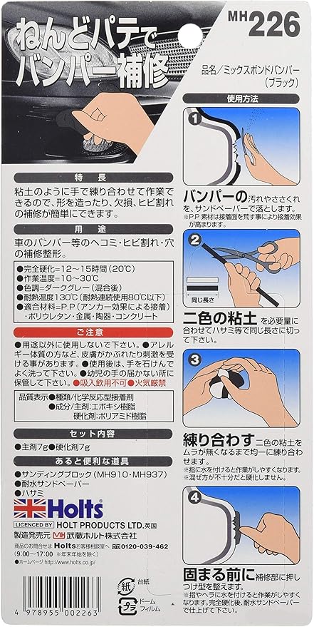 ホルツ 補修用パテ ねんどパテ バンパー用 ミックスボンドバンパー ブラック Holts MH226