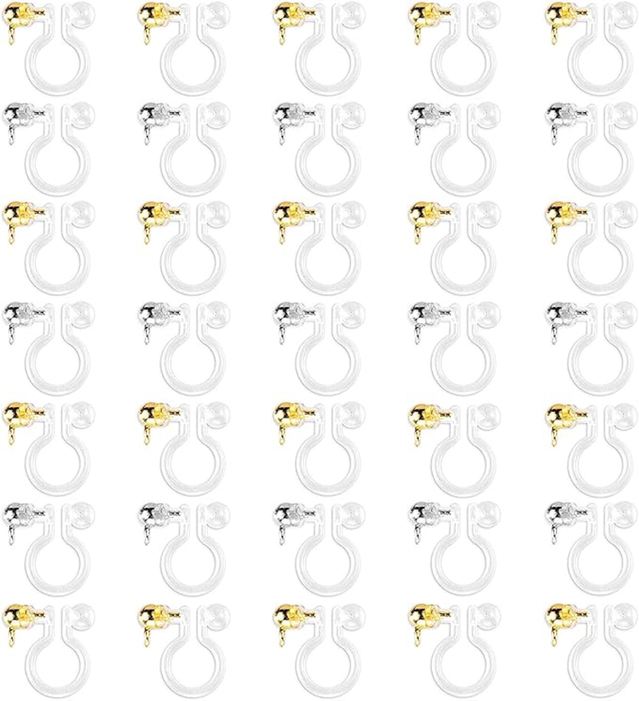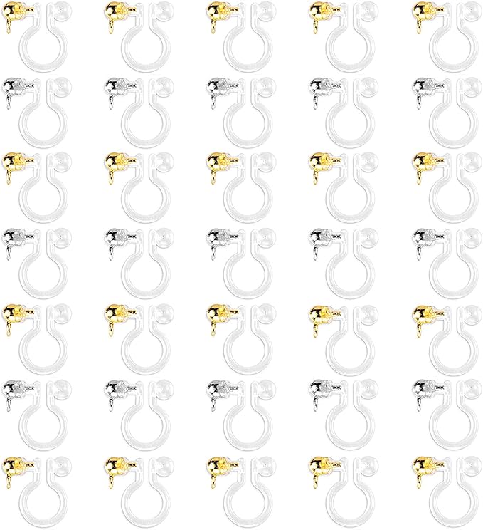 サムコス ノンホールピアス 樹脂 イヤリング セット カン付き 20ペア40個 縦カ 丸玉 ン ゴールド シルバー 2色 イヤリング 樹脂 透明色 手芸 DIY ハンドメイド 素材パーツ アレルギー対応 (A)