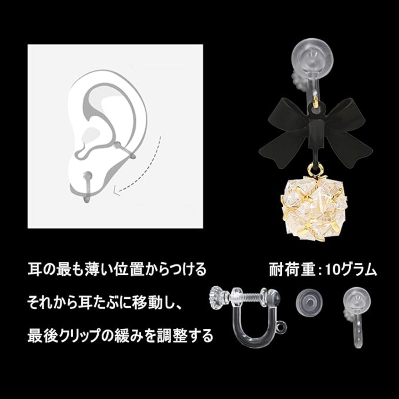 【おすすめ】素材は樹脂で、金属アレルギーの方、ピアスホールがあいていない方、通常のイヤリングが苦手な方、お子様にもオススメです。ネジバネ式のイヤリングは耳たぶの厚さにあわせてサイズ調整ができます。