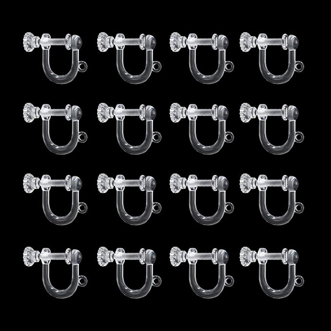 イヤリング イヤリングパーツ ネジ式調整クリップ クリア MUNCVY DIY 丸皿タイプ カン付き 8ペア16個 シリコンカバー付 アレルギー対応 ノンホール ハンドメイド 基礎材料 素材 アクセサリーパーツ