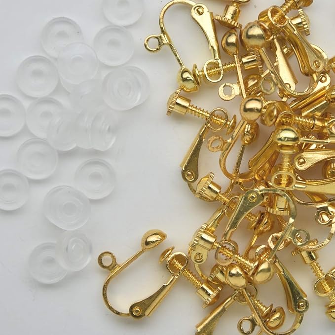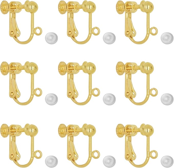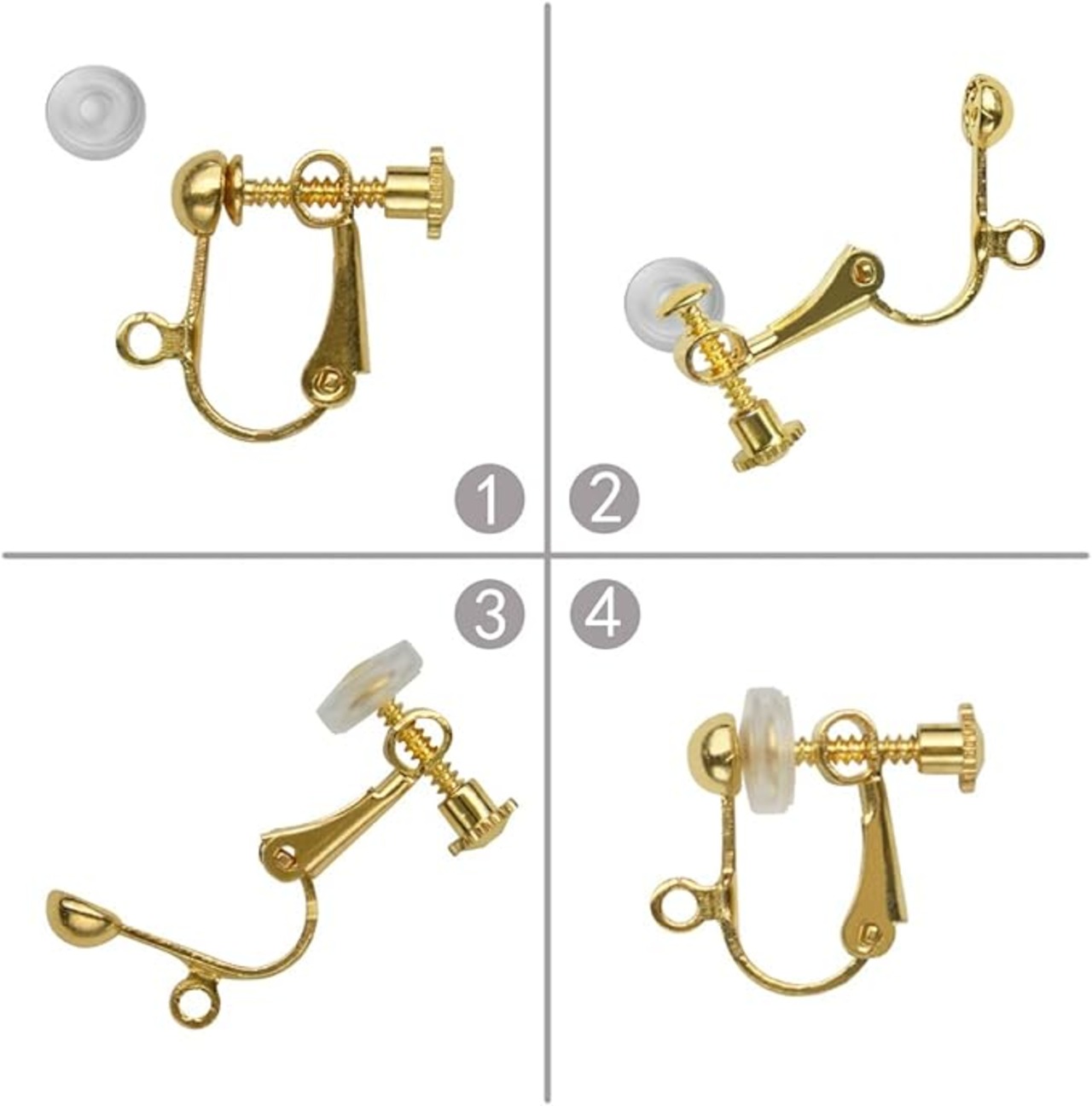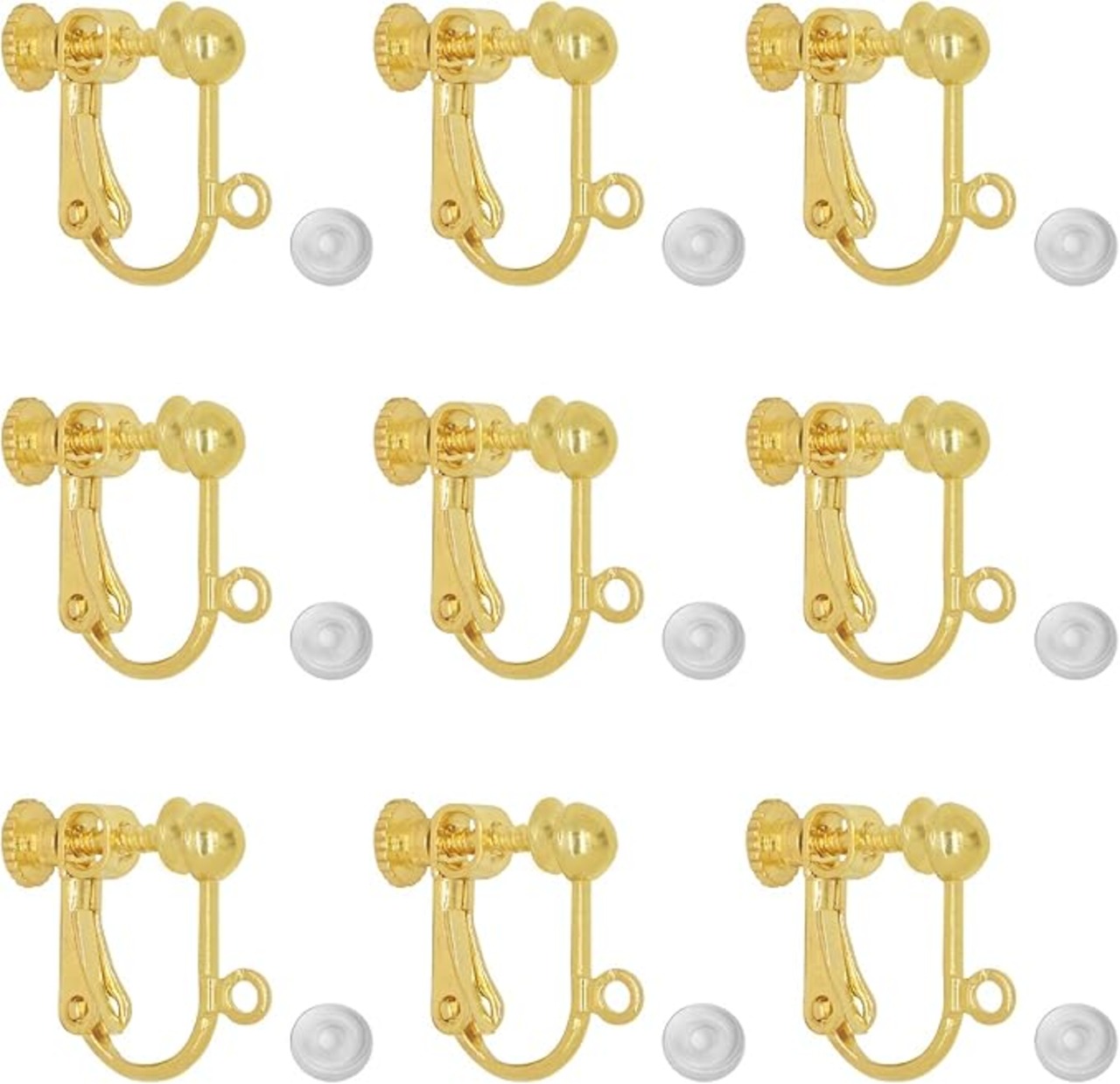 イヤリングパーツ MUNCVY DIY ネジバネ式 丸皿タイプ 10ペア20個 シリコンカバー付き ゴールド ネジ調整クリップ ノンホール ピアス ハンドメイド 基礎金具 材料 素材