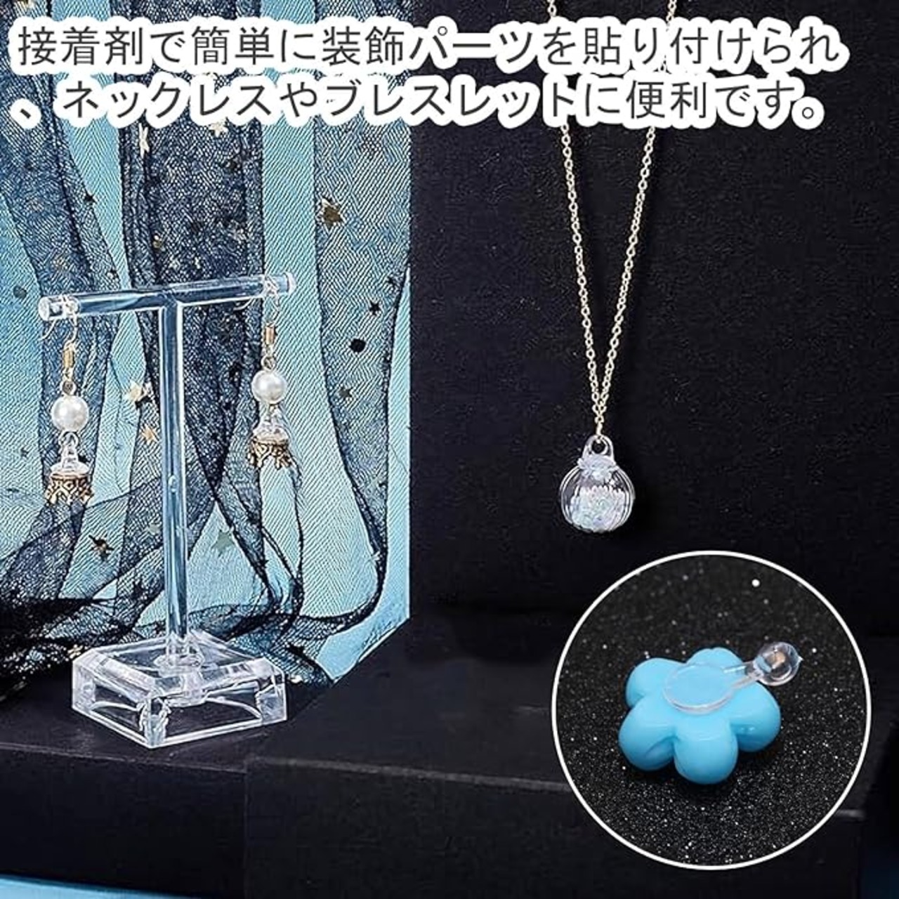 【使いやすさ】接着剤やホットメルト接着剤を使用して簡単に装飾パーツを貼り付けることができ、ネックレスやブレスレットのデコレーションに便利です。透明な質感により、装飾品の外観を損なうことなく、ペンダントの細部を鮮明に表現します。