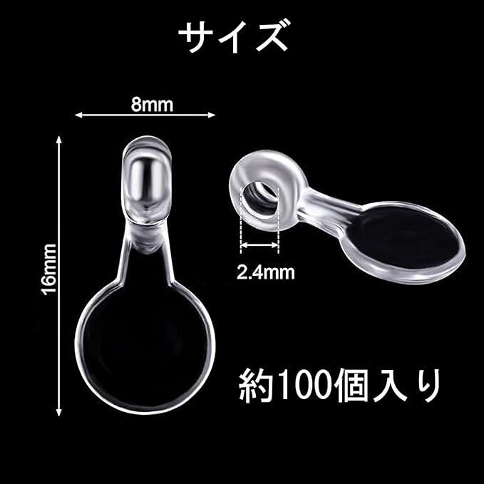 【仕様】サイズ:約16*8mm 色:透明 内容:約100個入り