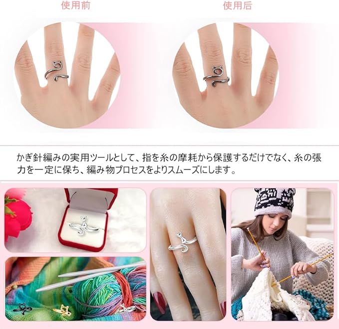 [DFsucces] かぎ針編みリング 4個入り 猫耳かぎ針編み糸リング 調節可能 指ホルダー 編み物用具 かぎ針を指で固定するのに適しています