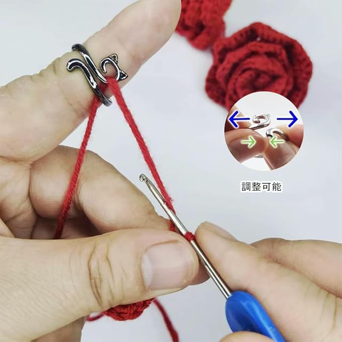 【多用途】かぎ針編みの実用ツールとして、指を糸の摩耗から保護するだけでなく、糸の張力を一定に保ち、編み物プロセスをよりスムーズにします。