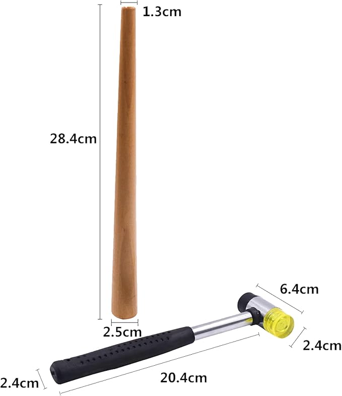 サイズ仕様:木製スティック:28.4x1.3~2.5cm、ゴムハンマー:20.4x6.4cm