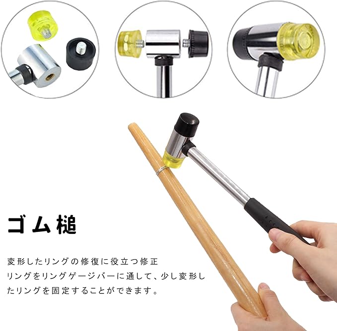 JLPESEAES 指輪サイズ 調整グッズ 指輪直し棒 コンビハンマー 補修ツール 3点 セット 指輪 の サイズ 測る やつ 変形した指輪を矯正し 日本仕様のスケールリングです (2 PACK Adjustment)
