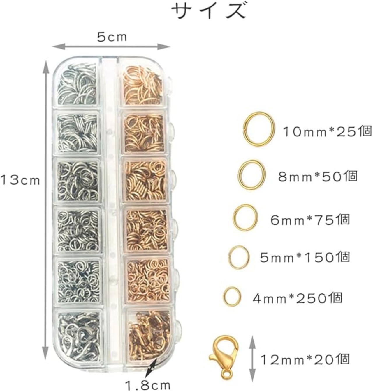 ○【パッケージ内容】丸カンセット1箱入り(シルバー、金色約1140枚)、指カン。