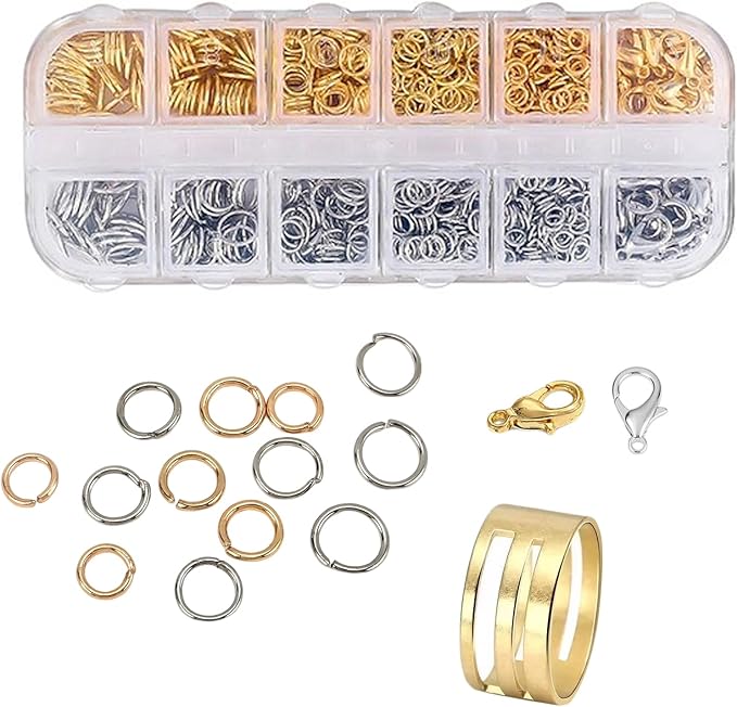 PrimeBlis 丸カン リングジャーアクセサリー 2色 12種類 アクセサリー素材 イヤリング ネックレス ジュエリーアクセサリー ジュエリー修理キット (シルバー、金色)
