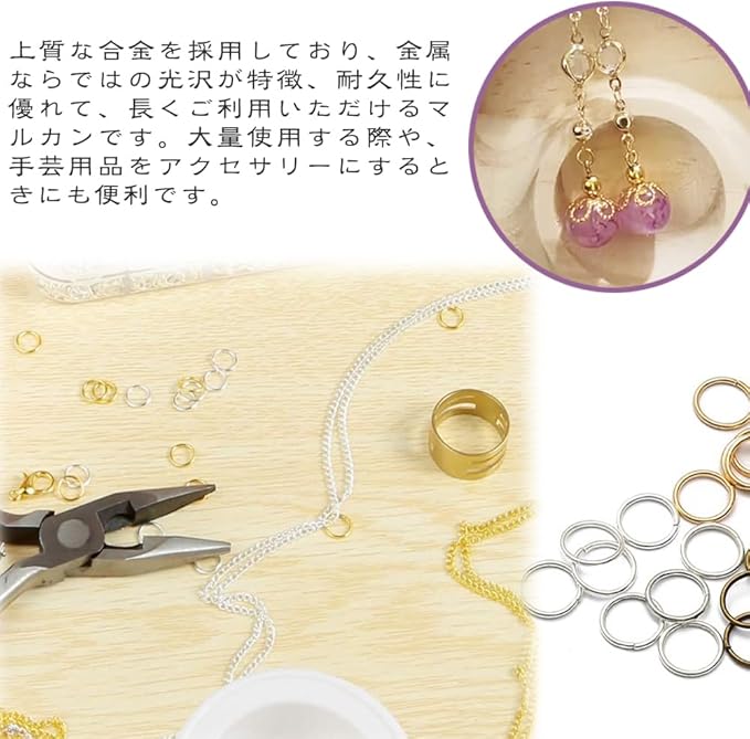○【使い勝手の良さ】丸カンはその使い勝手の良さで、アクセサリー制作はもちろん、ビーズアートやプラモデル制作など、細かい作業に幅広く活躍します。手軽に取り扱えるデザインで、初心者から上級者まで幅広い層に愛用されています。