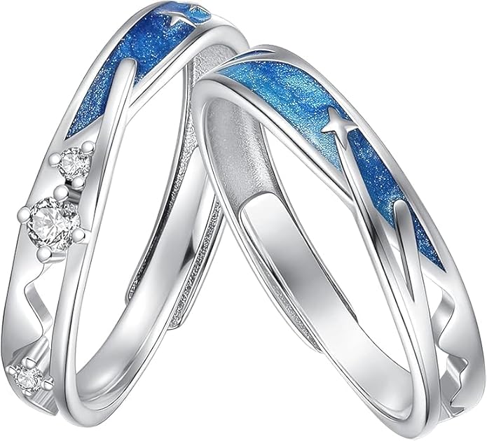 083基地 ペアリング 2個セット カップルリング 指輪 フリーサイズ シルバー925 流れ星 エナメル 琺瑯 幅4.5mm ギフトボックス